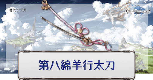 グラブル(グランブルーファンタジー)に登場する水着ガチャ武器のひとつ、アニラ(浴衣)のキャラ解放武器、水属性SSR刀「第八綿羊行太刀」の性能評価。奥義・スキル・ステータスと評価を掲載。必要本数も紹介しているので浴衣アニラ刀入手時や編成時の参考にどうぞ。
