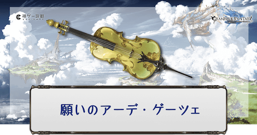 グラブル(グランブルーファンタジー)に登場するイベント武器のひとつ、風属性SSR杖「願いのアーデ・ゲーツェ」の性能評価。奥義・スキル・ステータスと評価を掲載。必要本数も紹介しているので入手時や編成時の参考にどうぞ。