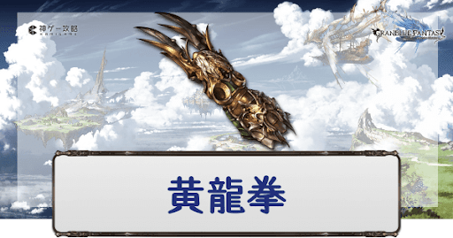 黄龍拳は武器スキルをLv20まで強化可能。そのため、イベントやサイドストーリーで入手できる、他のEX攻刃(大)武器よりも優れている武器といえる。アストラルウェポン「ロンゴミニアド」よりは攻刃量は低いが、闇属性ダメージ軽減効果で使い分けもできる。