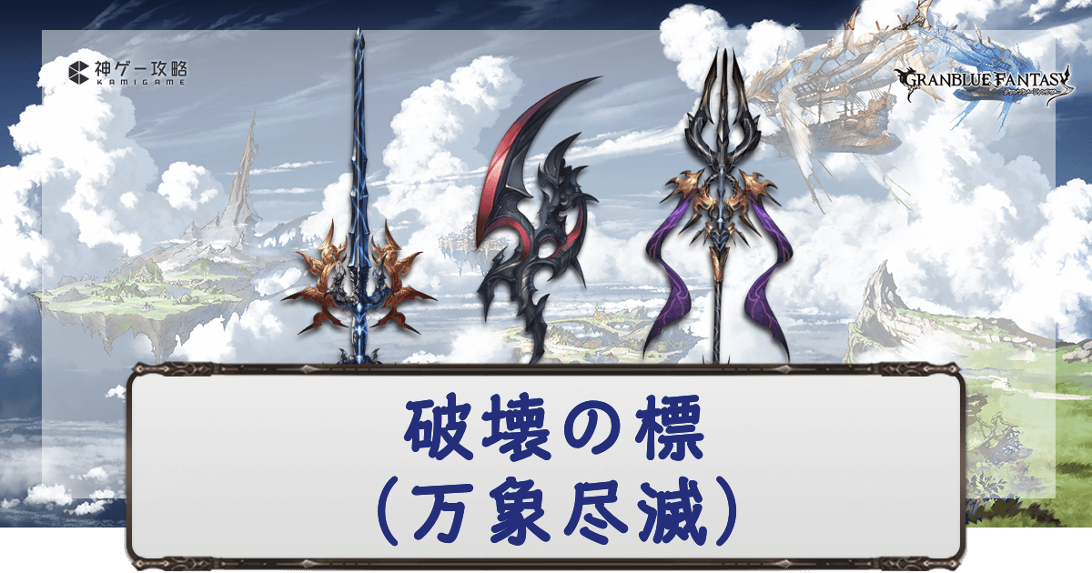 グラブル(グランブルーファンタジー)の武器シリーズの1つ「破壊武器」について解説。スキル性能や入手と強化手順も掲載。破壊の標シリーズを手に入れる際の参考にどうぞ。