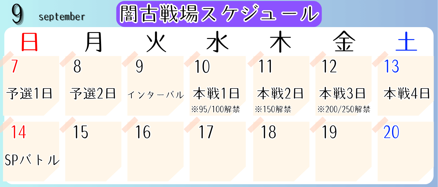 | 開催期間 | 9月7日(日)19:00 ~ 9月14日(日)23:59 |