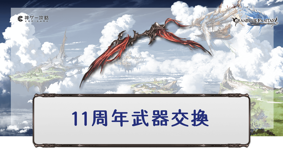 グラブル(グランブルーファンタジー)の11周年記念武器交換チケットのおすすめ武器を紹介。おすすめ武器を優先度別にまとめて解説する他、選び方や交換対象一覧も掲載。武器交換チケットを使う際の参考にどうぞ。