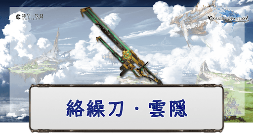 グラブル(グランブルーファンタジー)に登場するのひとつ、オクタヴィア(リミテッド)のキャラ解放武器、水属性SSR「絡繰刀・雲隠(リミテッド)」の性能評価。奥義・スキル・ステータスと評価、最終上限解放素材の情報を掲載。必要本数も紹介しているので入手時や編成時の参考にどうぞ。
