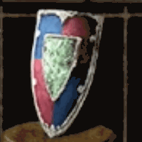 丁寧な彫刻と彩色が施された中型の金属盾。古い貴族の騎士が使ったものと思われるが防御効果自体は通常の盾と変わらない。 |