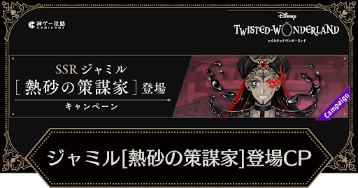 ツイステッドワンダーランド(ツイステ)のジャミル[熱砂の策謀家](オバブロジャミル)登場キャンペーンの内容まとめを掲載!開催期間やキャンペーン内容、ミッション、ログインボーナスなどを記載しているので、ツイステ攻略の参考にどうぞ。