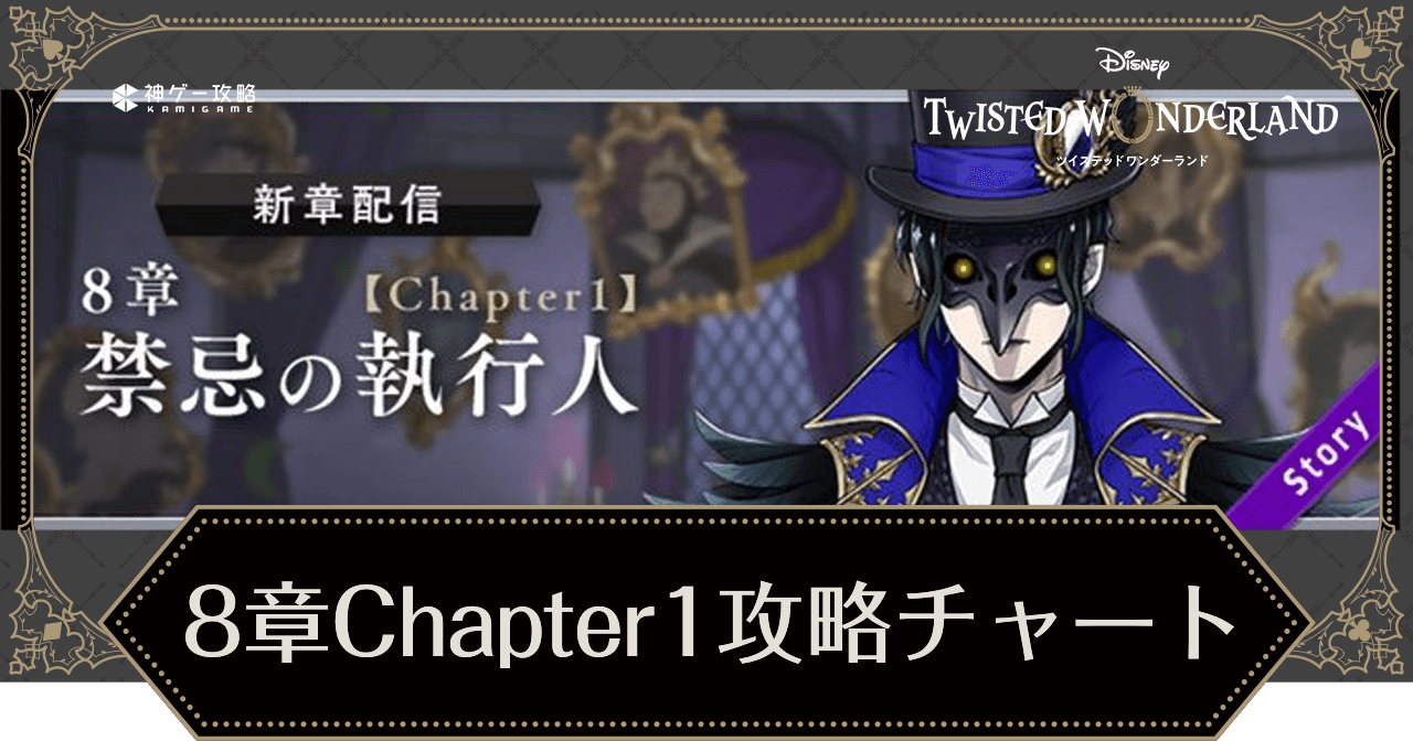 ツイステの8章「禁忌の執行人」Chapter1の攻略情報を紹介。配信情報や攻略チャート、ストーリー解放条件、攻略ポイント、バトル情報などを掲載。ツイステッドワンダーランドのメインストーリー攻略時の参考にどうぞ。