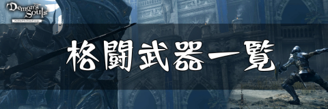 『デモンズソウル』における武器の格闘武器を一覧で紹介。ステータスやステータス補正の詳細を比較して確認できるため、デモンズソウルリメイクの攻略をする際の参考にどうぞ!