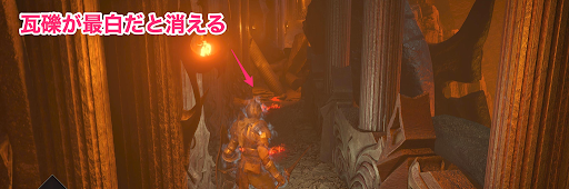 竜骨砕きはストーンファング坑道3の竜の神との戦闘エリアにて入手できる。竜の神のエリアに入って左手(結晶トカゲのいる方向)に進むと見つけられるが、エリアのソウル傾向が最白でないと瓦礫が邪魔で進めない。