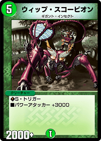 「ウィップ・スコーピオン」はギガント・インセクト唯一のSトリガー持ちクリーチャーだ。特筆した効果は持っていないが、「ピカリエ」や「エグゾリウス」などの4000ラインを一方的に処理できる点は優秀。
