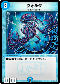 攻撃時に効果を発揮する遅延性のある効果タイミングがネックとなっているカード。同じコスト帯で登場時1ドロー効果を持つ「アクア・ハルカス」の方が扱いやすく、「ウォルタ」の投入が優先されることはほぼ無い。ただ、サイバーロードの進化クリーチャーなどが実装されれば活躍の場ができる可能性はある。
