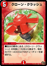 『デュエプレ(デュエマプレイス)』の「クローン・クラッシュ」の評価と採用デッキについて紹介。カードの効果や特徴、生成・分解コスト、関連カードなども掲載しているため、カード生成の参考にどうぞ。