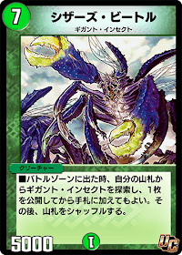 「シザーズ・ビートル」はバトルゾーンに召喚した時、デッキから味方の「ギガント・インセクト」をサーチできる。探索であるため、カードの種類を絞らなければ好きなカードを持ってくるのが難しいので注意が必要。