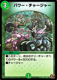 | ■このターン、自分のクリーチャーすべてのパワーを+3000する。 ■チャージャー |