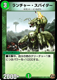 『デュエプレ(デュエマプレイス)』の「ランチャー・スパイダー」の評価と採用デッキについて紹介。カードの効果や特徴、生成・分解コスト、関連カードなども掲載しているため、カード生成の参考にどうぞ。