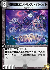 『デュエプレ(デュエマプレイス)』の「奇術王エンドレス・パペット」の評価と採用デッキについて紹介。カードの効果や特徴、生成・分解コスト、関連カードなども掲載しているため、カード生成の参考にどうぞ。