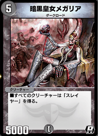『デュエプレ(デュエマプレイス)』の「暗黒皇女メガリア」の評価と採用デッキについて紹介。カードの効果や特徴、生成・分解コスト、関連カードなども掲載しているため、カード生成の参考にどうぞ。