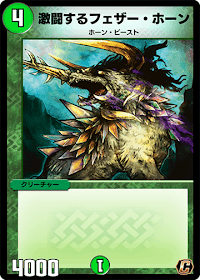 『デュエプレ(デュエマプレイス)』の「激闘するフェザー・ホーン」の評価と採用デッキについて紹介。カードの効果や特徴、生成・分解コスト、関連カードなども掲載しているため、カード生成の参考にどうぞ。