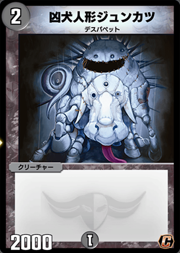 『デュエプレ(デュエマプレイス)』の「狂犬人形ジュンカツ」の評価と採用デッキについて紹介。カードの効果や特徴、生成・分解コスト、関連カードなども掲載しているため、カード生成の参考にどうぞ。