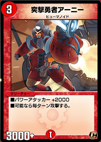 『デュエプレ(デュエマプレイス)』の「突撃勇者・アーニー」の評価と採用デッキについて紹介。カードの効果や特徴、生成・分解コスト、関連カードなども掲載しているため、カード生成の参考にどうぞ。