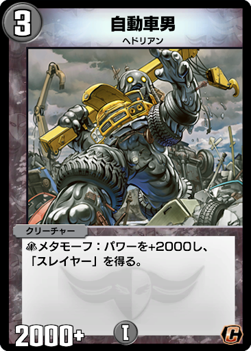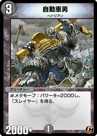 『デュエプレ(デュエマプレイス)』の「自動車男」の評価と採用デッキについて紹介。カードの効果や特徴、生成・分解コスト、関連カードなども掲載しているため、カード生成の参考にどうぞ。