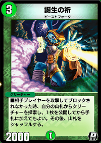 『デュエプレ(デュエマプレイス)』の「誕生の祈(バース・アイ)」の評価と採用デッキについて紹介。カードの効果や特徴、生成・分解コスト、関連カードなども掲載しているため、カード生成の参考にどうぞ。