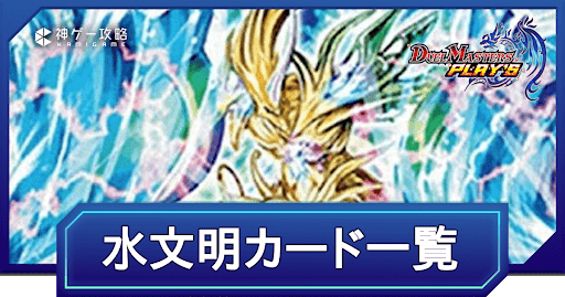『デュエプレ(デュエマプレイス)』における文明「水文明」のカードを一覧で掲載。単色、多色に分けて掲載しているので、デュエマプレイス攻略の参考にどうぞ。