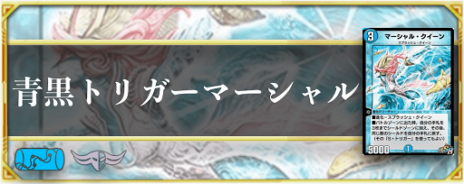 青黒トリガーマーシャルは、「マーシャル・クイーン」を軸に水/闇文明のトリガー獣を展開し、クリーチャーの物量で攻めるデッキだ。