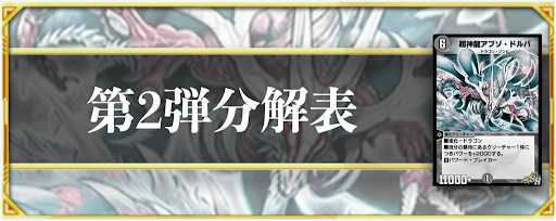 『デュエプレ(デュエマプレイス)』における第2弾パックの分解おすすめカードを一覧で掲載。SR〜Cのレアリティ別に複数枚残した方が良いカードなども掲載しているのでぜひ参考にどうぞ。