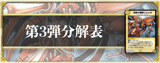 『デュエプレ(デュエマプレイス)』における第3弾パックの分解おすすめカードを一覧で掲載。SR〜Cのレアリティ別に複数枚残した方が良いカードなども掲載しているのでぜひ参考にどうぞ。