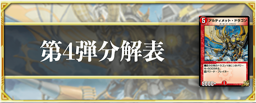 『デュエプレ(デュエマプレイス)』における第4弾パックの分解おすすめカードを一覧で掲載。SR〜Cのレアリティ別に複数枚残した方が良いカードなども掲載しているのでぜひ参考にどうぞ。