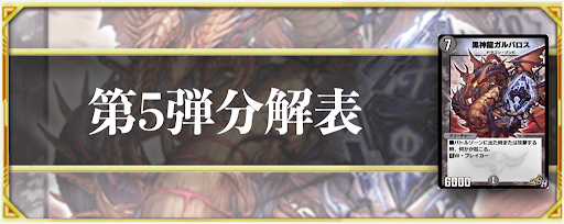 『デュエプレ(デュエマプレイス)』における第5弾パックの分解おすすめカードを一覧で掲載。SR〜Cのレアリティ別に複数枚残した方が良いカードなども掲載しているのでぜひ参考にどうぞ。