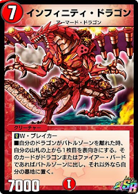「インフィニティ・ドラゴン」は自分のドラゴンがバトルゾーンを離れる度に代わりとなるドラゴンまたはファイアー・バードをデッキトップから場に出し、ドラゴンの継戦力をサポートできるクリーチャーだ。