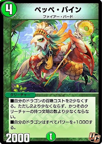 「ペッペ・パイン」はドラゴンの召喚コストを2下げる自然版の「コッコ・ルピア」だ。ドラゴンのパワーラインを1000上げる付加価値も付いている。