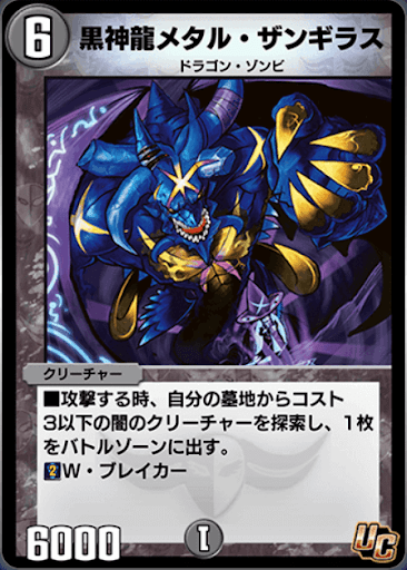 | ■攻撃する時、自分の墓地からコスト3以下の闇のクリーチャーを探索し、1枚をバトルゾーンに出す ■W・ブレイカー |