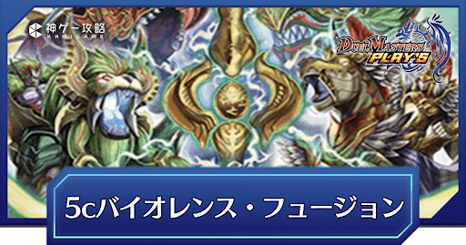 『デュエプレ(デュエマプレイス)』のAll Divisionにおける|5cバイオレンス・フュージョンデッキのレシピと回し方を紹介。キーカードとなるカードの紹介やデッキの特徴、序盤〜終盤までのデッキの回し方、マスター・レジェンド到達デッキ、デッキコードについて紹介しているため、ぜひ参考にどうぞ。