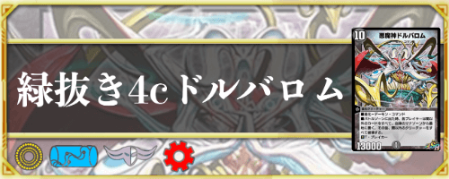 『デュエプレ(デュエマプレイス)』のNew Divisionにおける|緑抜き4cドルバロムデッキのレシピと回し方を紹介。キーカードとなるカードの紹介やデッキの特徴、序盤〜終盤までのデッキの回し方、マスター/レジェンド到達デッキ、デッキコードについて紹介しているため、ぜひ参考にどうぞ。