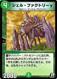 「シェル・ファクトリーγ」は、登場時にサバイバーをデッキから手札に補充する、サバイバーデッキを回す際の軸となるクリーチャーだ。単体でも優秀な能力な上、他サバイバーにも同様の能力が付与されるため、場残りさえすれば強力なリソース源になる。