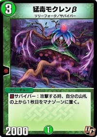 『デュエプレ(デュエマプレイス)』の「猛毒モクレンβ」の評価と採用デッキについて紹介。カードの効果や特徴、生成・分解コスト、関連カードなども掲載しているため、カード生成の参考にどうぞ。
