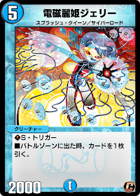 『デュエプレ(デュエマプレイス)』の「電磁麗姫ジェリー」の評価と採用デッキについて紹介。カードの効果や特徴、生成・分解コスト、関連カードなども掲載しているため、カード生成の参考にどうぞ。