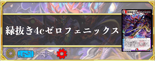 『デュエプレ(デュエマプレイス)』のAll Divisionにおける|緑抜き4cゼロフェニックスデッキのレシピと回し方を紹介。キーカードとなるカードの紹介やデッキの特徴、序盤〜終盤までのデッキの回し方、マスター・レジェンド到達デッキ、デッキコードについて紹介しているため、ぜひ参考にどうぞ。