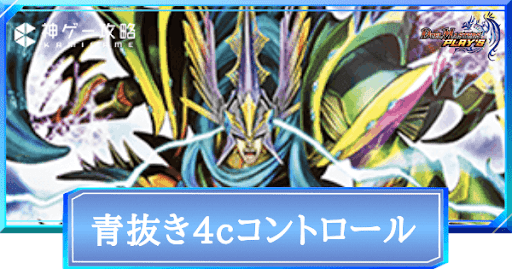 『デュエプレ(デュエマプレイス)』のNew Divisionにおける|青抜き4cコントロールデッキのレシピと回し方を紹介。キーカードとなるカードの紹介やデッキの特徴、序盤〜終盤までのデッキの回し方、マスター/レジェンド到達デッキ、デッキコードについて紹介しているため、ぜひ参考にどうぞ。