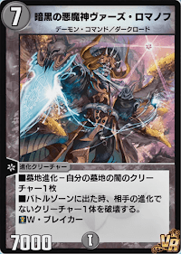 | ■墓地進化-自分の墓地の闇のクリーチャー1枚 ■バトルゾーンに出た時、相手の進化でないクリーチャー1体を破壊する。 ■W・ブレイカー |