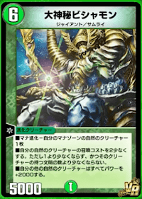 『デュエプレ(デュエマプレイス)』の「大神秘ビシャモン」の評価と採用デッキについて紹介。カードの効果や特徴、生成・分解コスト、関連カードなども掲載しているため、カード生成の参考にどうぞ。