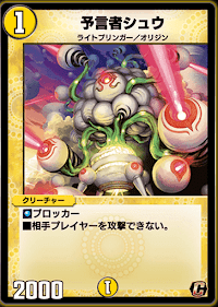 『デュエプレ(デュエマプレイス)』の「予言者シュウ」の評価と採用デッキについて紹介。カードの効果や特徴、生成・分解コスト、関連カードなども掲載しているため、カード生成の参考にどうぞ。