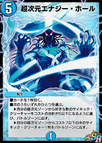 《超次元エナジー・ホール》は、盤面の状況に応じて水文明の大型サイキック獣か、文明を問わない小型サイキック獣の複数展開を使いこなせる超次元呪文だ。コストによっては覚醒後のサイキック獣も展開できる。