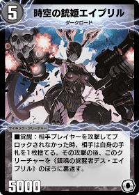 《時空の銃姫エイプリル》は、相手プレイヤーへの直接攻撃成功時にハンデスを行い、《鎮魂の覚醒者デス・エイプリル》へと覚醒するサイキック・クリーチャーだ。《超次元エイプリル・ホール》をパックから入手、または、生成時に獲得できる。
