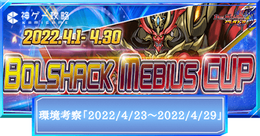 『デュエプレ(デュエマプレイス)』のボルシャック・メビウスカップNew Divisionにおける2022年4月23日〜2022年4月29日の環境メタデッキ考察を掲載中。現環境のメタデッキリストや流行デッキの傾向などを解説しているため、環境把握の参考にどうぞ。