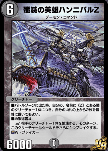 『デュエプレ(デュエマプレイス)』の「殲滅の英雄ハンニバルZ」の評価と採用デッキについて紹介。カードの効果や特徴、生成・分解コスト、関連カードなども掲載しているため、カード生成の参考にどうぞ。