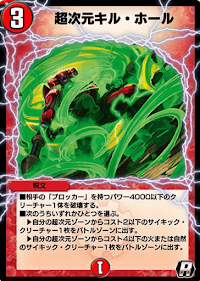 《超次元キル・ホール》は、ブロッカーを破壊できる効果を持った超次元呪文だ。速攻デッキやビートデッキに採用すれば、攻撃を妨害してくるブロッカーを除去しつつ、サイキック獣を展開できるため相性が良い。