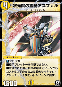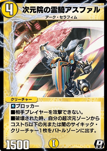 『デュエプレ(デュエマプレイス)』の「次元院の霊騎アスファル」の評価と採用デッキについて紹介。カードの効果や特徴、生成・分解コスト、関連カードなども掲載しているため、カード生成の参考にどうぞ。